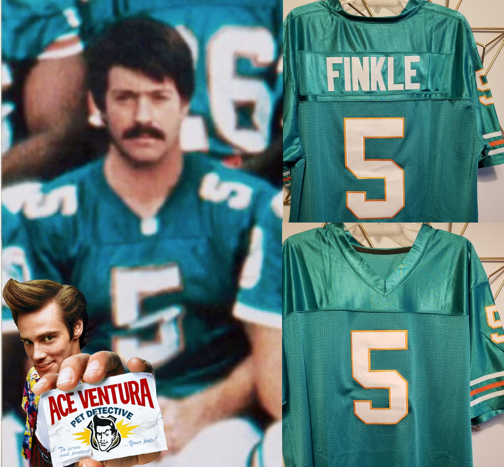 Ray Finkle Ace Ventura Movie Miami Dolphins Football #5 Movie Jersey Custom Throwback 90's Retro Movie Jersey